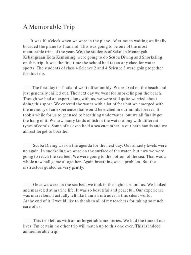 Having this things makes me feel complete. I may have been getting married at most memorable experience essay young age and having a baby but it does not mean that I will give up, most memorable experience essay. They are my inspiration to study hard so that in the future, I can give a good life and a good education for my little one. Treasure your experience and make it as one of you inspiration. Sorry, most memorable experience essay, but copying text is forbidden on this website. If you need this or any other sample, we can send it to you via email. By clicking "SEND", you agree to our terms of service and privacy policy. We'll occasionally send you account related and promo emails. With a hour delay you will have to wait for 24 hours due to heavy workload and high demand - for free.